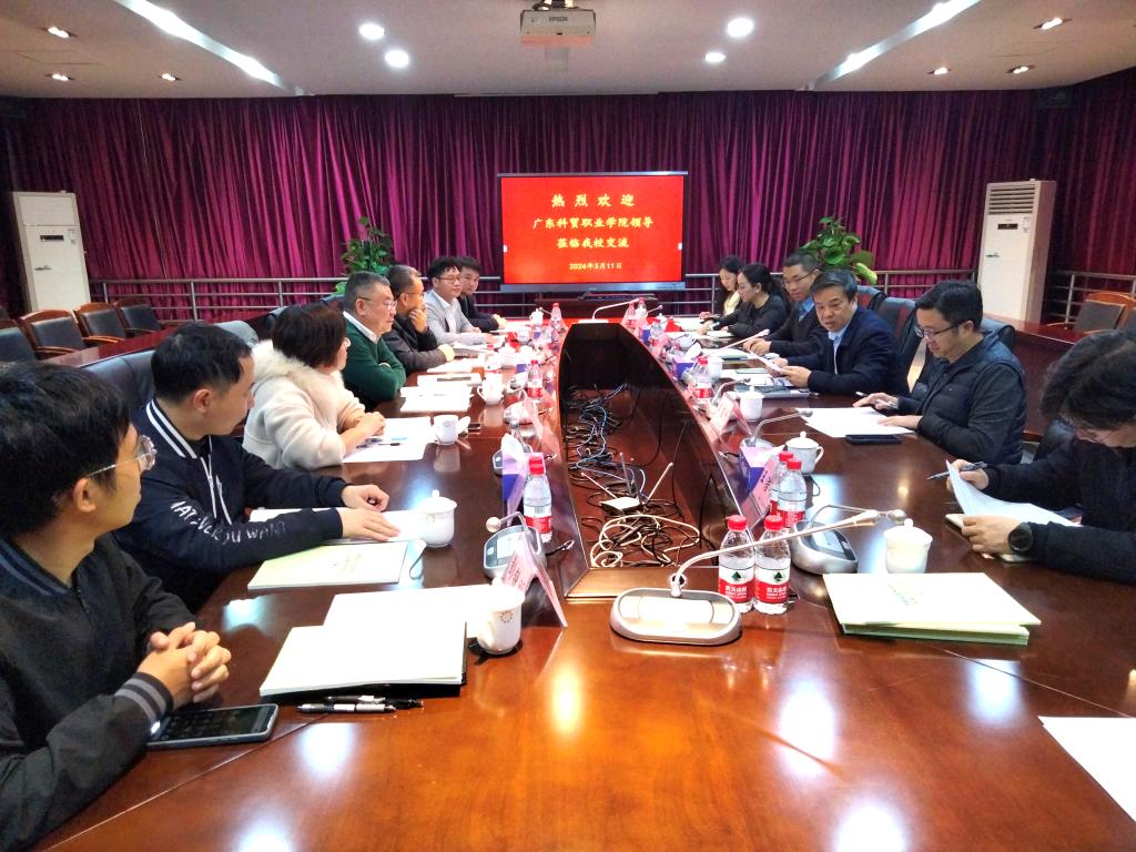 3月11日下午,广东科贸职业学院副校长鲁毅一行来我校交流,我校党委委员、宣传部部长杨洋,人事处处长吴显嵘及相关人员参加交流。