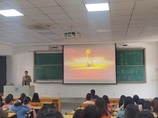 刘忠洋书记以“总体把握、准确领会党的十九届六中全会的丰富内涵和核心要义”为主题展开,向同学们讲述了十九届六中全会的基本情况和主要内容。课堂围绕中国共产党的宗旨和目标,紧扣十九届六中全会习近平总书记的工作报告和两个重要决议,以四件大事、四个伟大成就、四个伟大飞跃、四个庄严宣告为核心概括了在中国共产党的领导下,中国取得的辉煌成就和社会的巨大变化。进一步提升了同学们对党的认识、对国家的热爱之情,也进一步明确了当代大学生的责任与担当。